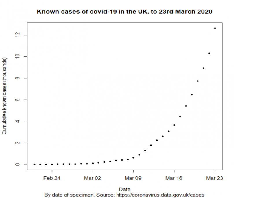 FIGURE 1: EXPONENTIAL GROWTH OF COVID-19 CASES IN MARCH 2020 (UK GOVERNMENT, [2020])